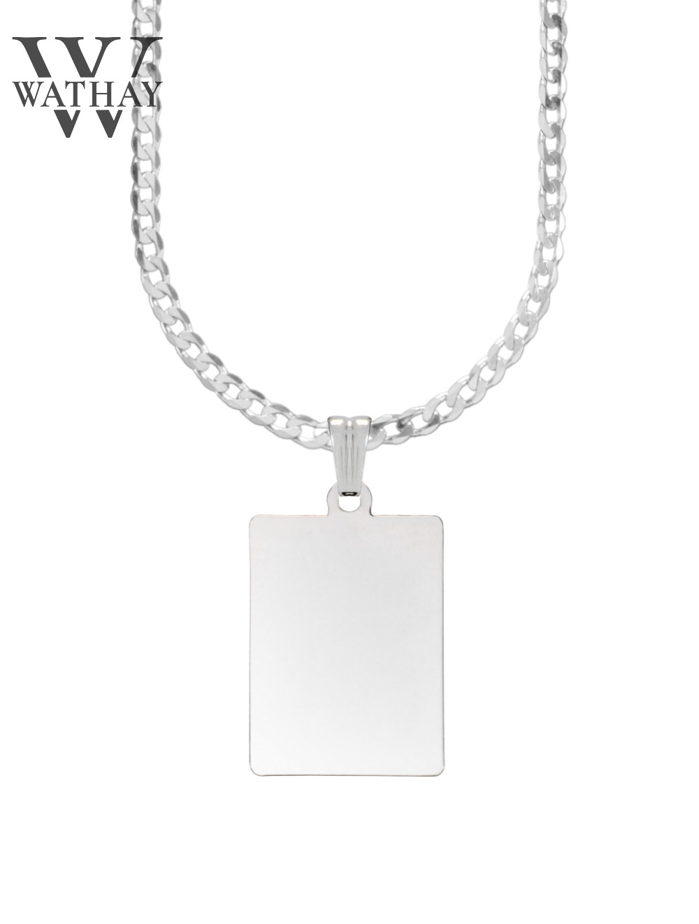 Ezüst medál | Téglalap közepes Pancer lánccal | Üzenet gravírozás